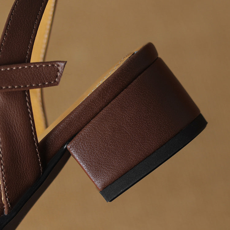 Handcrafted from genuine leather, the braided design offers breathability and a one-of-a-kind style. These heels are equipped with a classy closed-toe silhouette, a non-slip leather sole, sturdy block heel, and adjustable straps.